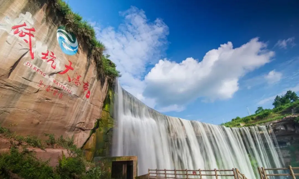 低坑大瀑布位于广安市岳池县坪滩镇,是国家3A级旅游景区。景区以宽128米,高60米的大瀑布为核心资源,是国内罕见的单体大瀑布。
