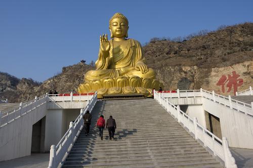 二、石佛寺。大伊山曾有“云台和尚伊山庙,僧道寺观胜苏州”之誉,旧时山上遍布寺庙20余座,历来是寻仙求道的洞天福地,曾被誉为“淮北第一神山”、“苏北第一丛林”,是苏北乃至鲁南地区宗教最为发达的地区,有很多的宗教和文化活动的遗址。古刹石佛寺就是其中的典型代表,她兴建于元皇庆二年(公元1313年),后数度兴毁。今天的石佛寺是参照镇江金山寺的建制规模于2002年开始兴建的,其大雄宝殿高27.6米,为歇山重檐式建筑。