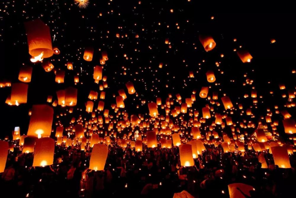 最后会放飞孔明灯,大家相信孔明灯会把一整年的晦气、厄运带到九霄云外。漫天的孔明灯缓缓升起,壮观至极。