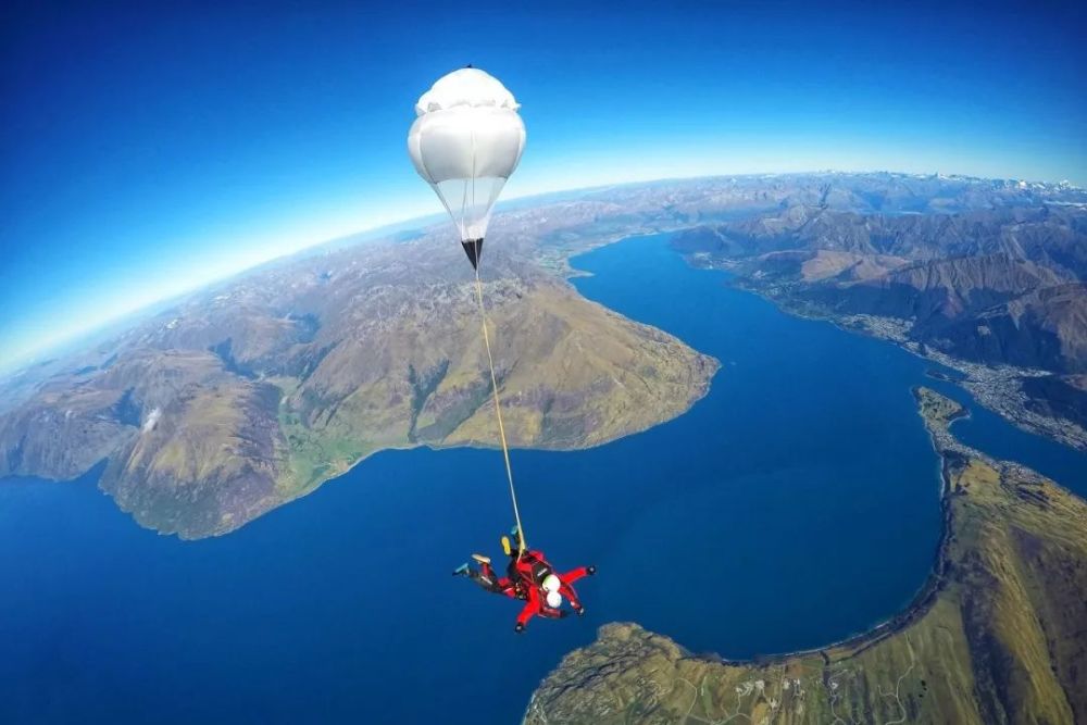 来这里,一定要体验跳伞。当你漂浮在 12,000 英尺的高空,壮丽而辽阔的风景瞬间变成一幅缩小的地图展现在你眼底。