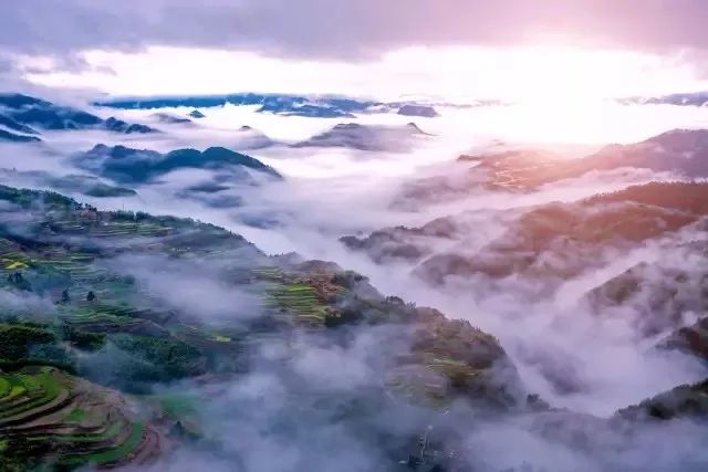 沿线途中的古村落、梯田民居、山高路险、青山云海、人稀车少、瀑布溪流,宛如一幅三十公里的长轴山水画,令人沉醉。