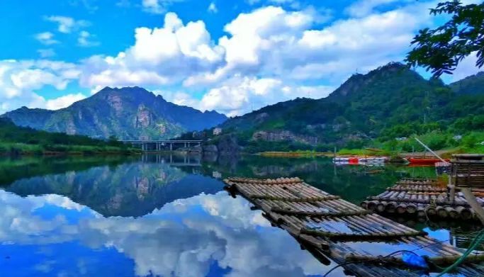 被喻为“黄山第一漂”,乘皮筏顺流而下,两岸风景秀丽,群山环绕。