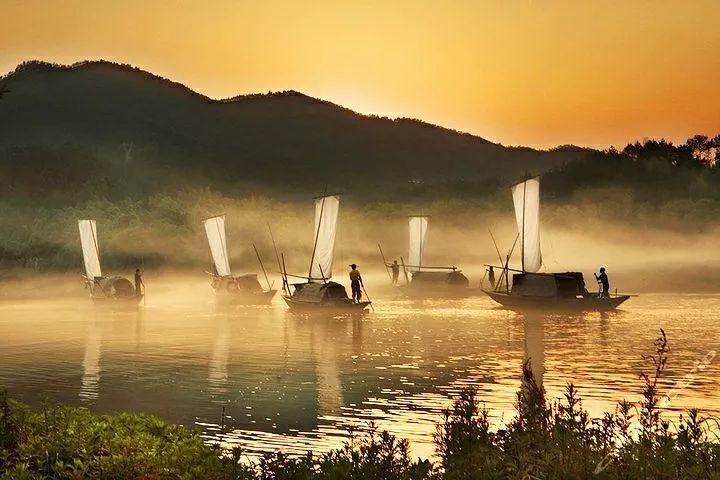 秋天的楠溪江是最美的季节,江畔到处是芦苇荡,伴随夕阳水面闪闪发光,美丽至极。