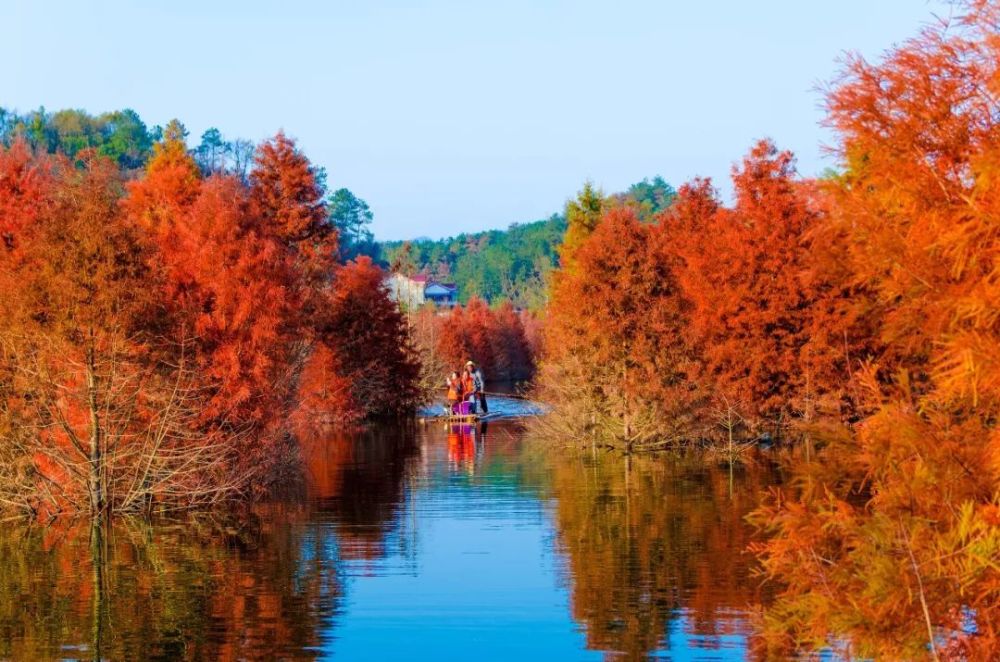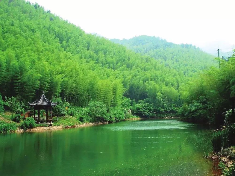 静湖竹筏碧波游,竹筏上看湖泊美景,乘南山索道在高空看竹海壮阔之景。