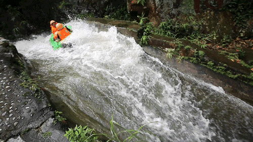 漂流过程几乎可以不用桨,水流会推着皮划艇前行。