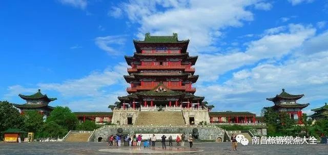 1,滕王阁:滕王阁,江南三大名楼之一[1],位于江西省南昌市西北部沿江路赣江东岸,(其实就是现在的八一桥)始建于唐朝永徽四年,因唐太宗李世民之弟——李元婴始建而得名,因初唐诗人王勃诗句“落霞与孤鹜齐飞,秋水共长天一色”而流芳后世。