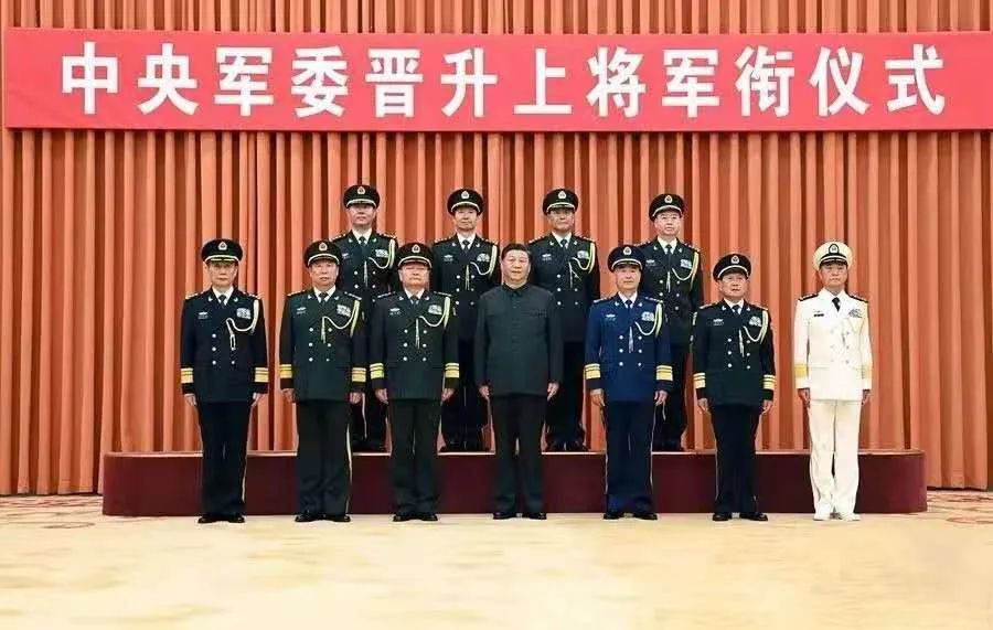 中央军委晋升上将军衔仪式5日在北京八一大楼隆重举行。中央军委主席习近平向晋升上将军衔的军官颁发命令状。这次晋升上将军衔的军官是:南部战区司令员王秀斌、西部战区司令员徐起零、陆军司令员刘振立、战略支援部队司令员巨乾生。