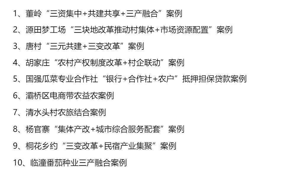 近日,市农业农村局总结梳理出第一批西安乡村振兴城乡融合发展十大案例,并且进行系统分析和推广。据了解,这有助于我市全面推进乡村振兴、加快农业农村现代化,为相关工作提供了有益参考。(记者 杨耀青)