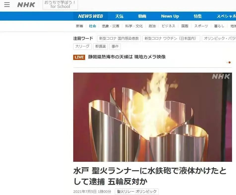日本一女子反对东京奥运,举水枪射向火炬手!