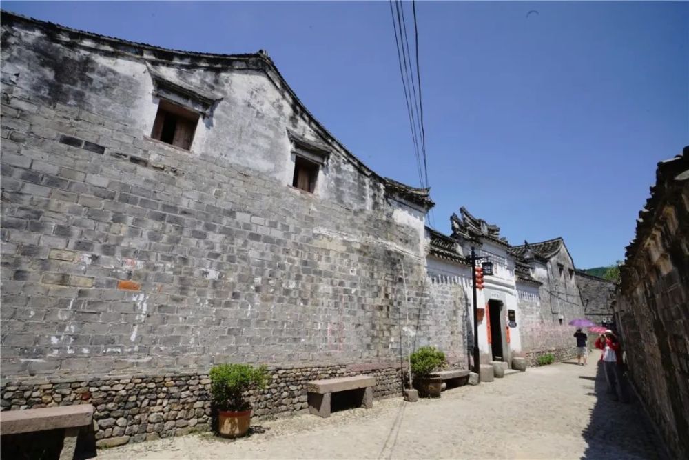 这是一座千年的江南古村落,青石墙基、青石小路,台门各异,古树依屋;曲溪环绕,炊烟袅袅……是一副日落而息的江南旧景。