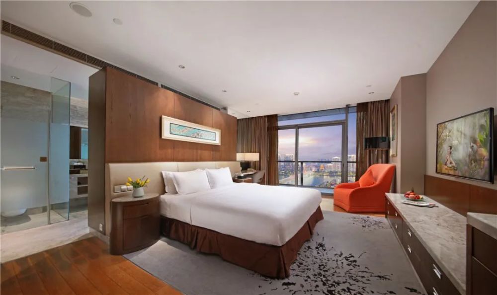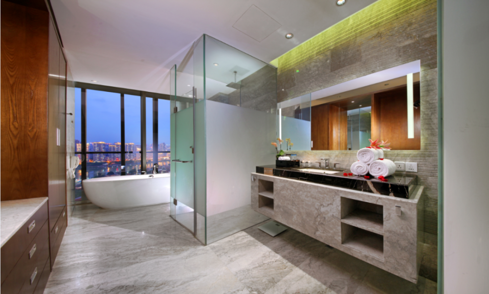 房间内空间宽敞,卫生间干湿分离,部分房间更有超大浴缸,可以一边享受浪漫的泡泡浴,一边欣赏迷人的城市美景。