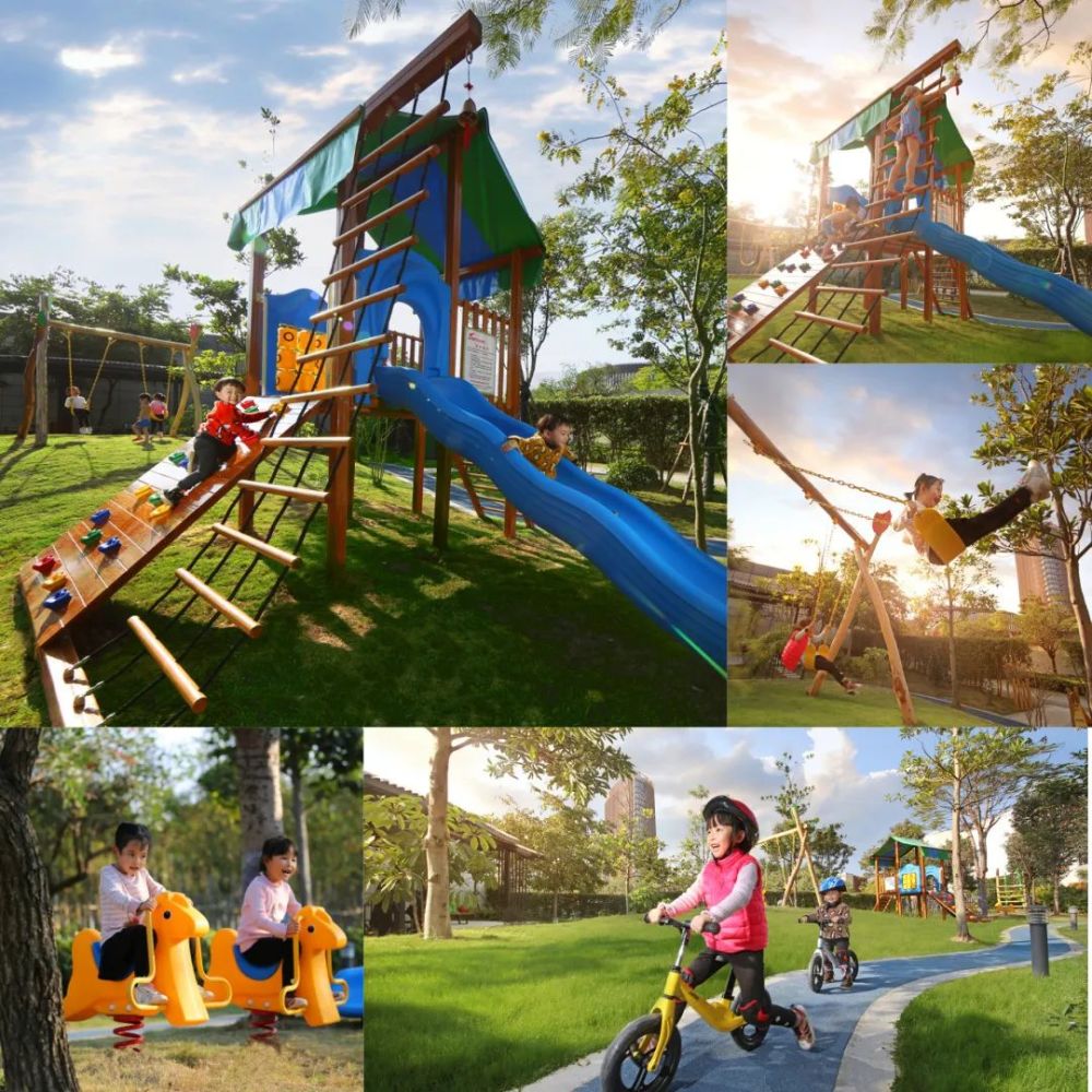 温泉区的儿童游乐园是萌宝们最爱的玩乐基地,这里有平衡车、起伏弯道、秋千、木马、滑滑梯......萌宝们可在此尽情玩乐。