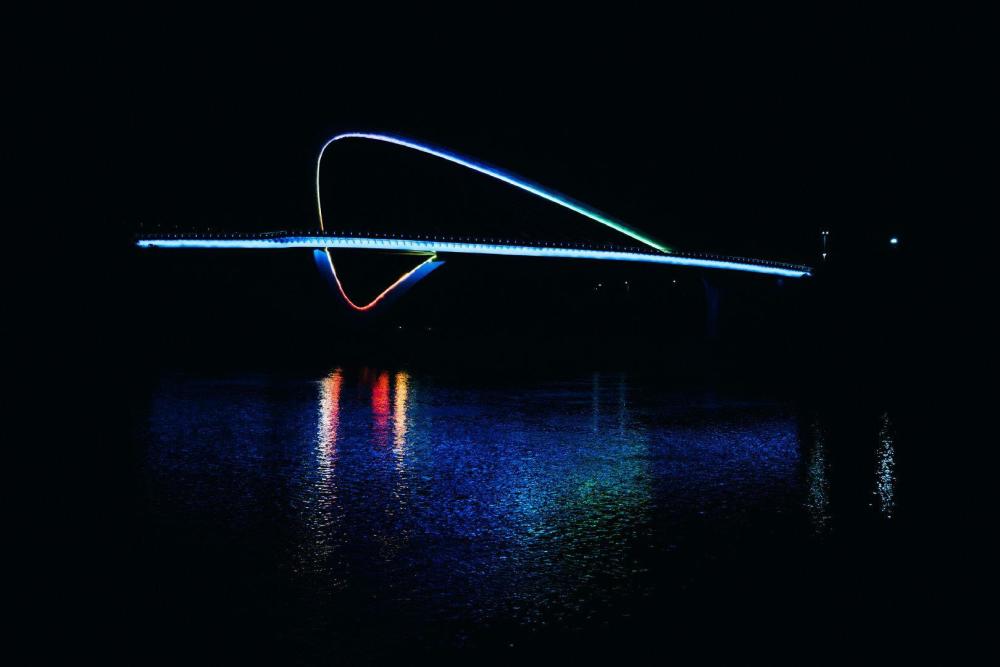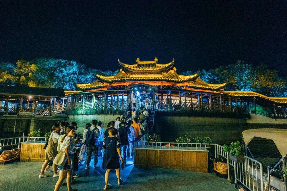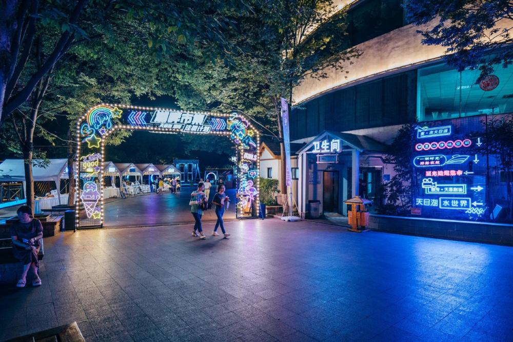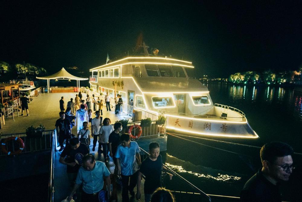 最后,华丽丽的夜晚泛舟也让人激动不已。沿岸被灯带装扮,黑漆漆的水路尽头是绚丽多彩的激光水幕、网红桥……关于湖的情趣,天目湖已经到了极致。