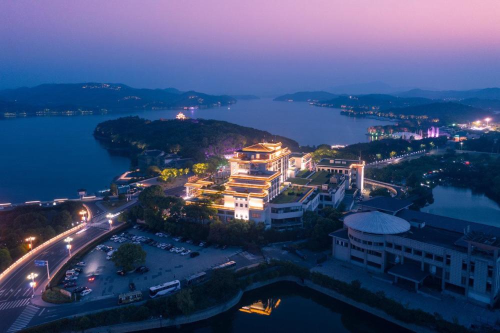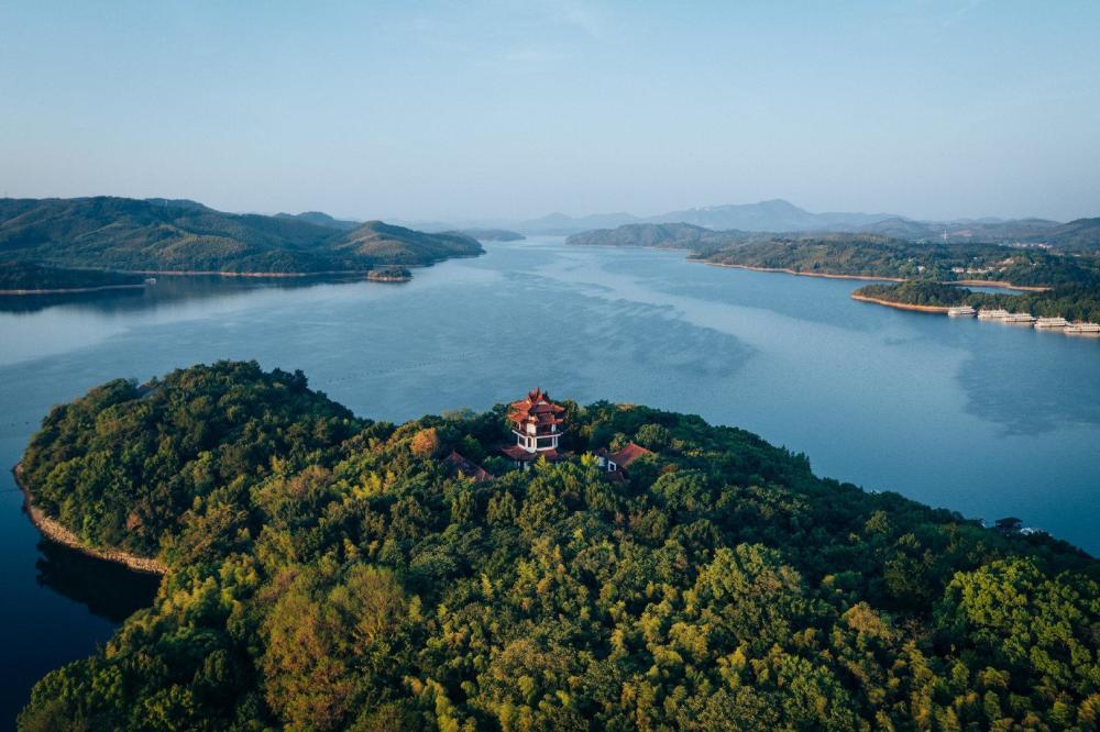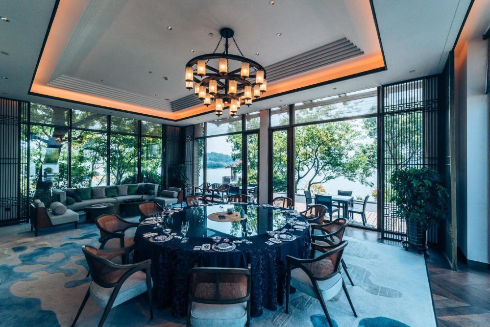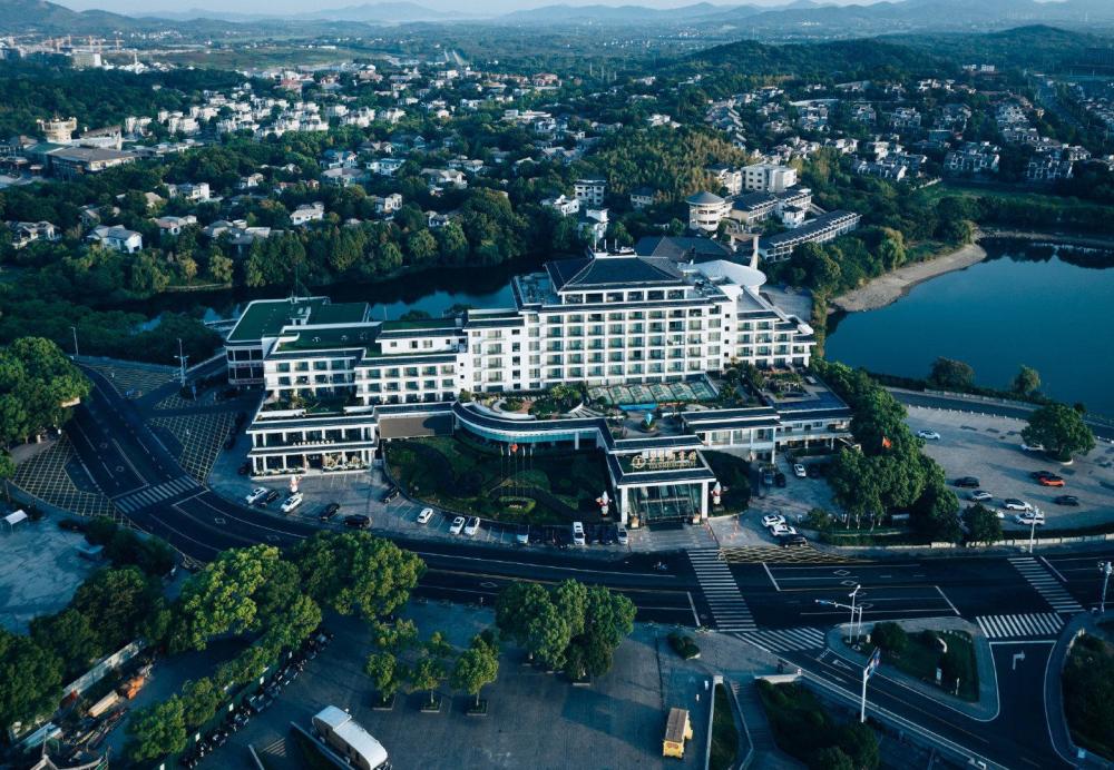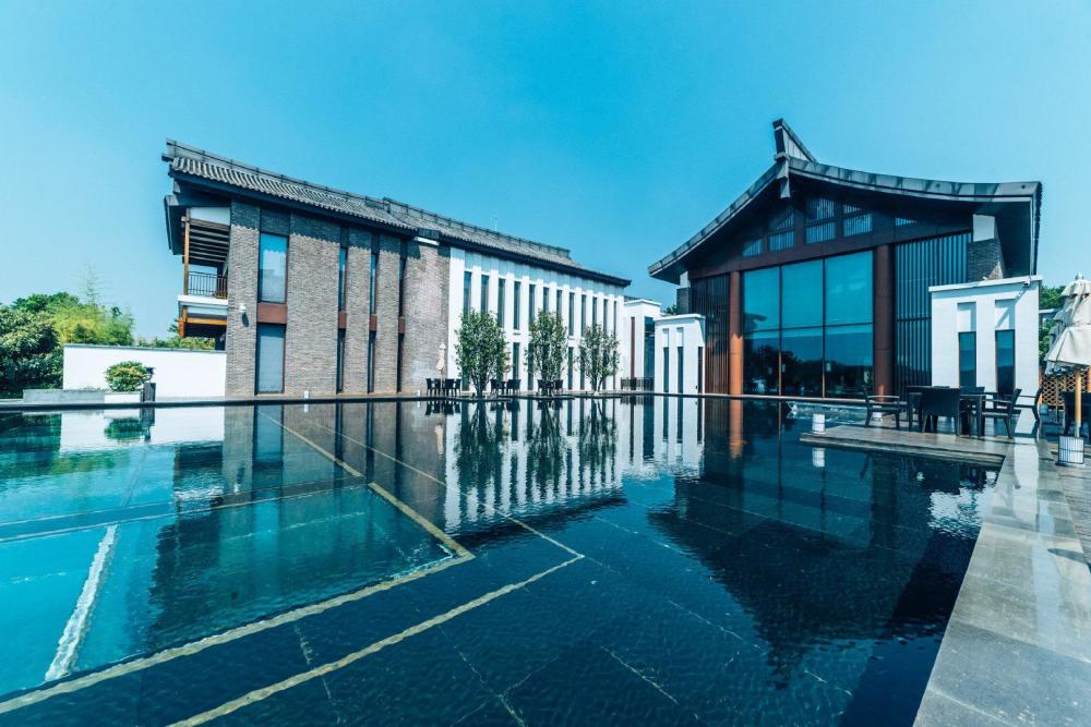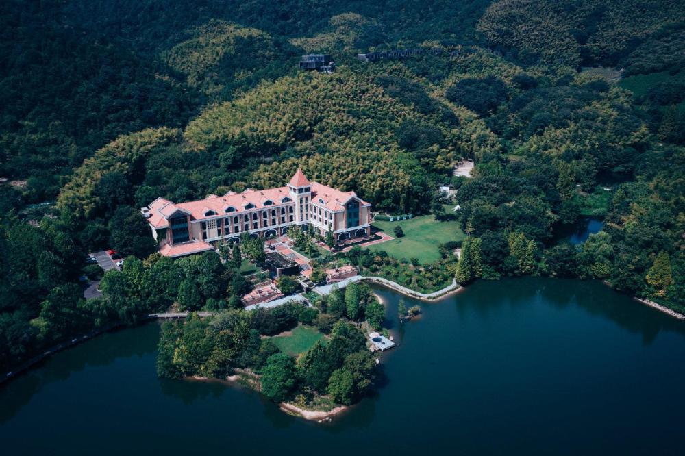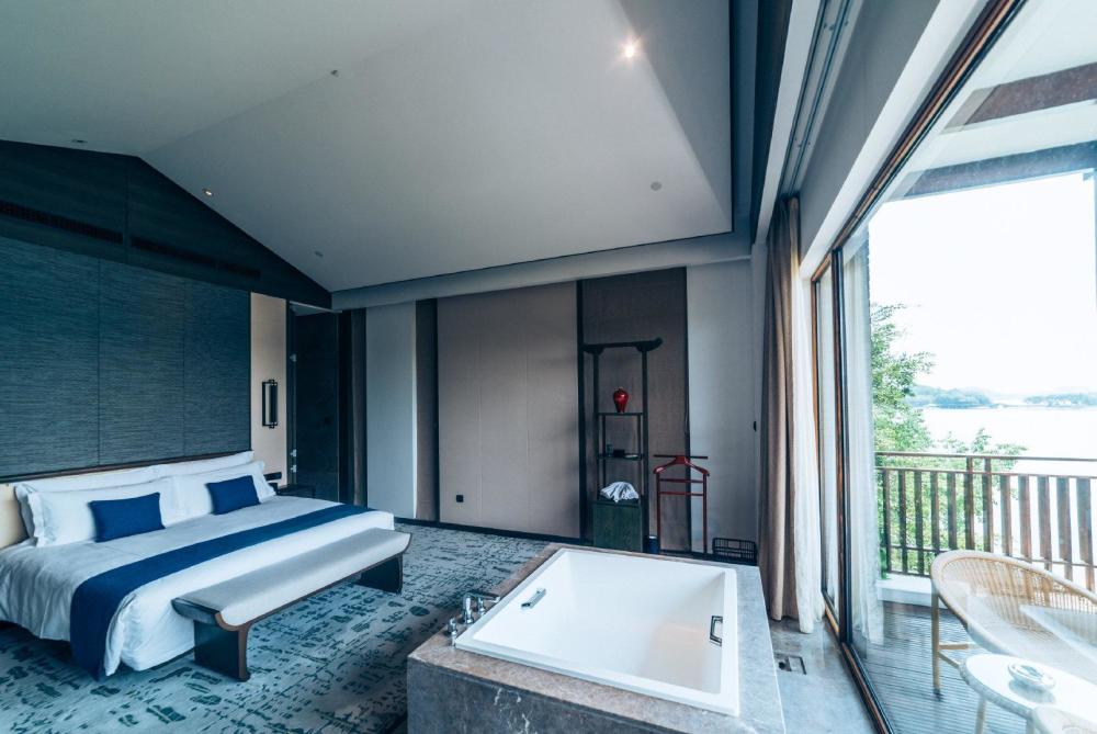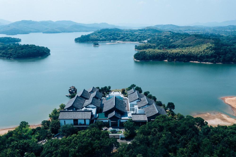 酒店独占半岛,隐世独立,主体建筑下的三层水景错落别致,大堂吧将酒店水景与远处天目湖融为一体,视觉效果甚是惊艳。