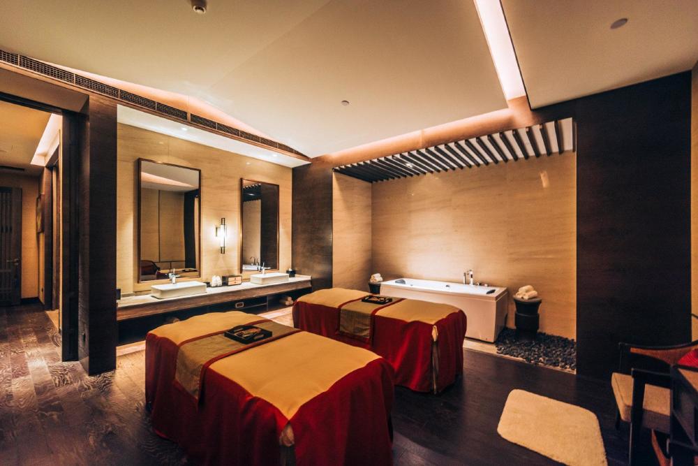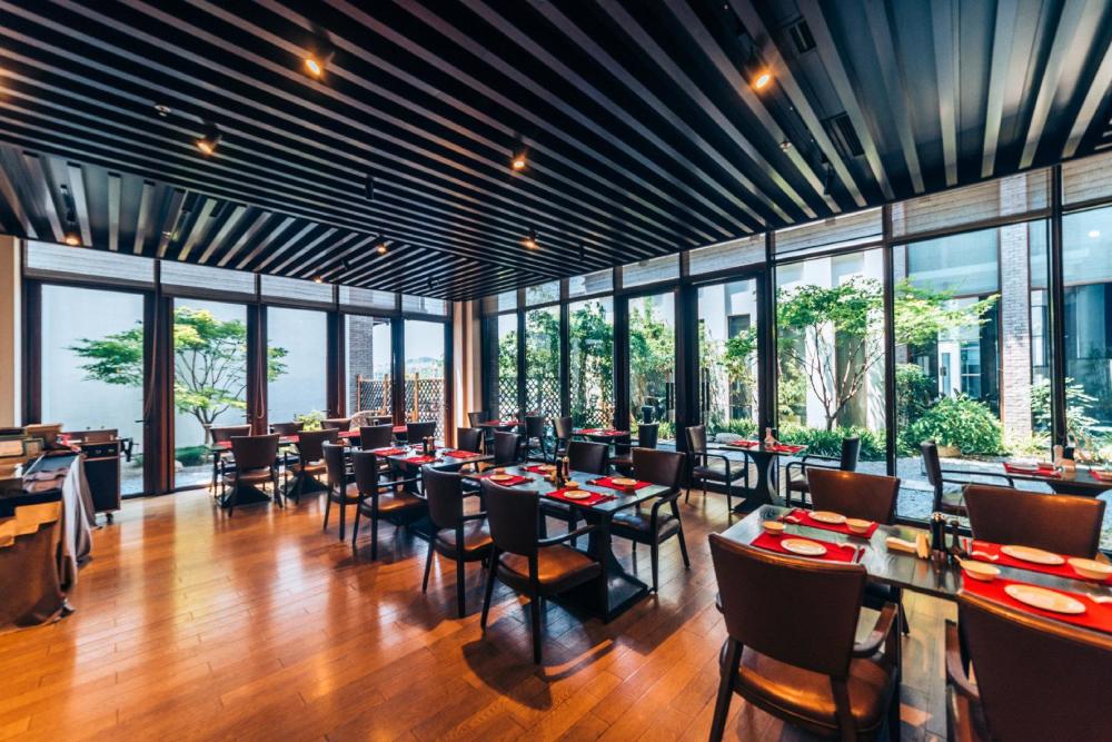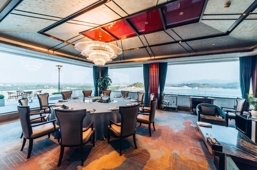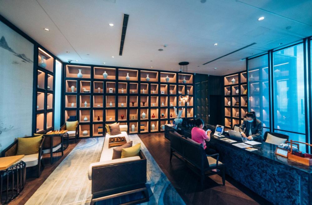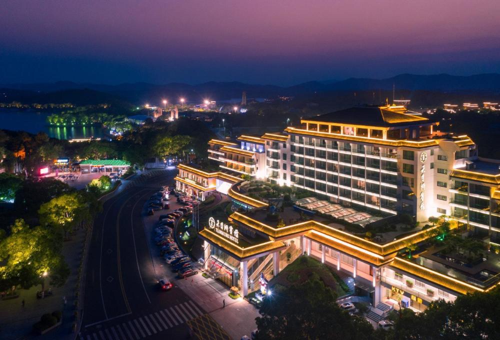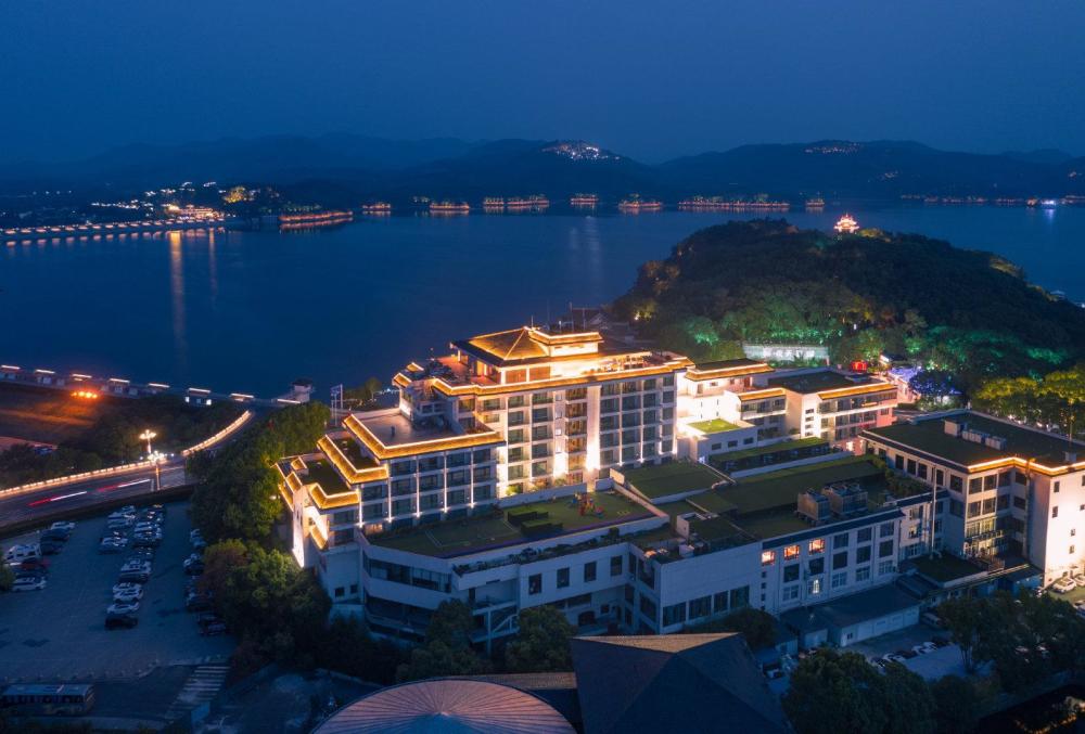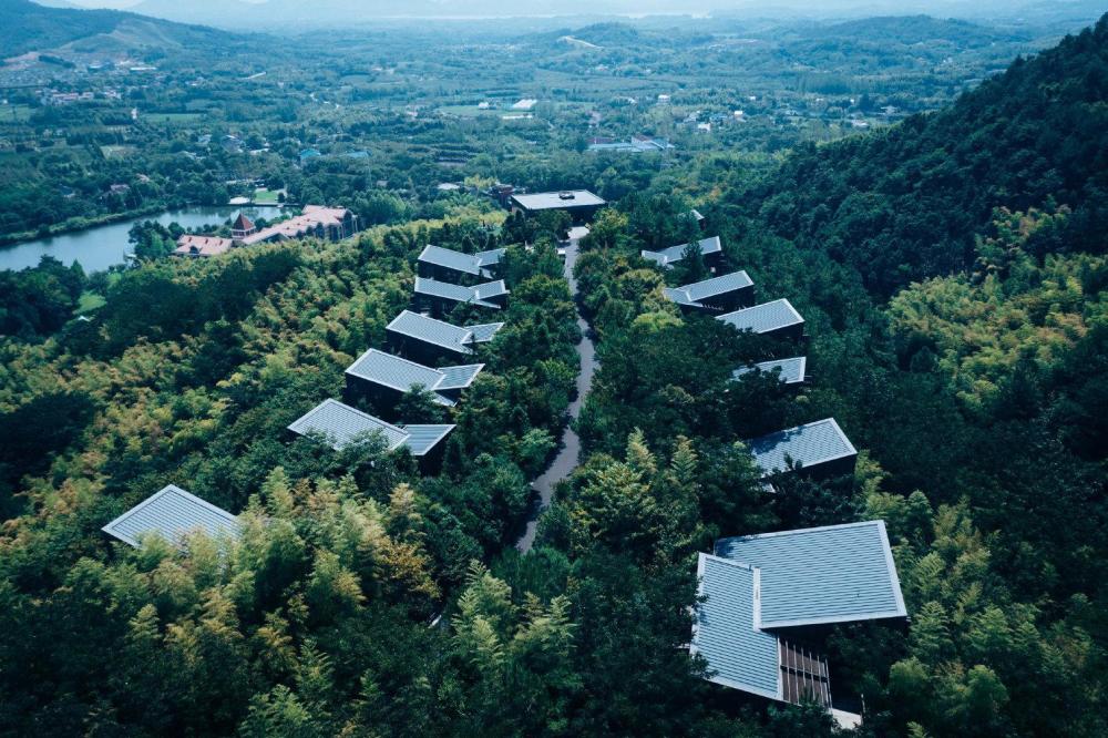 酒店独占半岛,隐世独立,主体建筑下的三层水景错落别致,大堂吧将酒店水景与远处天目湖融为一体,视觉效果甚是惊艳。