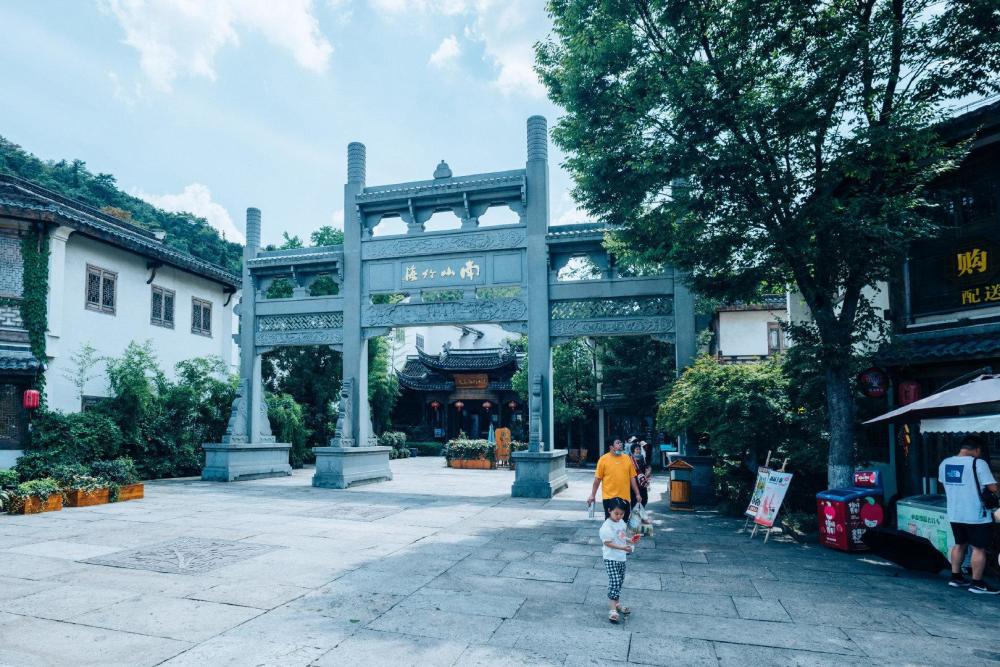 穿过古街,利用小火车、过山车行至南山竹海顶点,就到了江苏省的边界了。然而这里并非山穷水尽,山顶上的鸡鸣村掩映在浓密的竹林深处,顿觉得柳暗花明,眼前一亮。隔壁是安徽、浙江省。这个村子的公鸡早上打鸣,三省人都听得见。