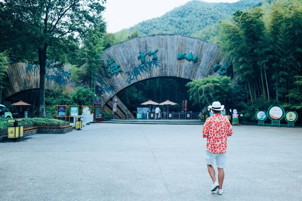 穿过一座座竹子博物馆,一路领略着关于竹子的传奇。尽头是竹子化作的萌宠精灵——大熊猫。江苏籍的大熊猫平躺着享受着竹海的清凉,安逸的样子似乎早都忘了家乡四川的样貌。