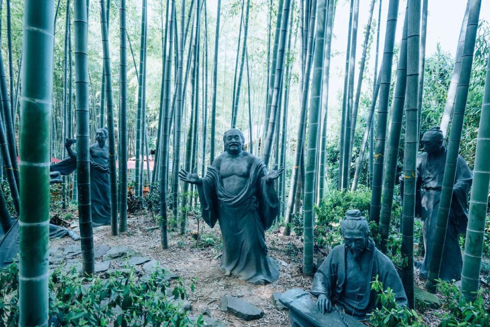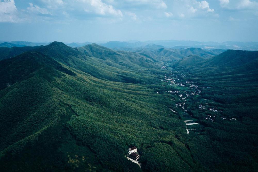 江苏省从苏南走到苏北尽是一马平川河网密布的扁平风景。唯独这里放眼望去有层峦叠嶂的立体群山。碧翠的竹海包裹着山体,吴越弟一峰高耸。这里的“弟”写法特别,竹字头被自然代替。这时,山风吹来,竹子的清新夹着这沁人心脾的清凉拂面,想到此地恐怕是江苏夏季最凉爽的地方了吧。