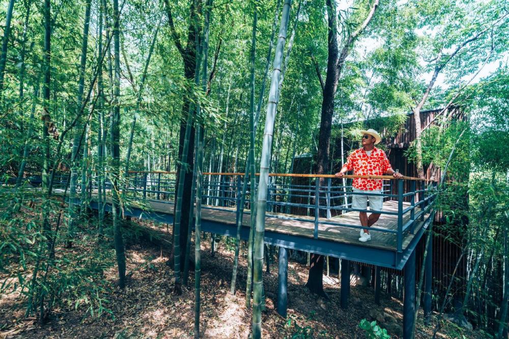 才从酒店出来,忍不住到这家酒店瞅瞅,只恨自己假期余额不足。美岕山野温泉度假村的客房建在山脊的竹林里,那种悬空的高度恰巧在树冠上,风吹竹林,发出阵阵竹涛声,在房间的露台上倾听,如同大自然的呼吸。