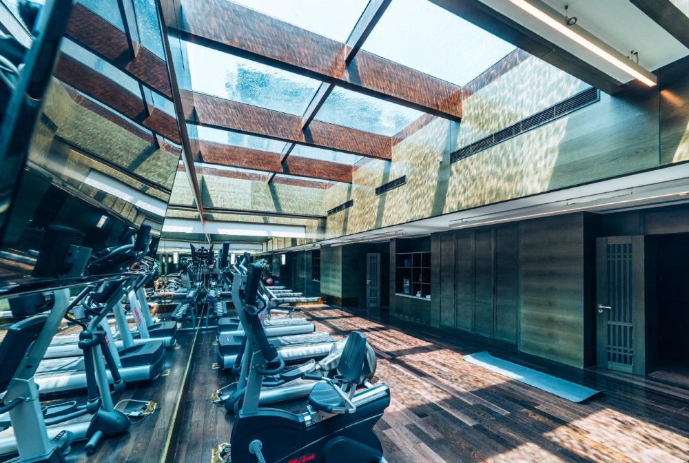 SPA、放映厅布置在地下室,健身房的顶部即是景观水池底部,波光闪烁的设计感让人叫绝。