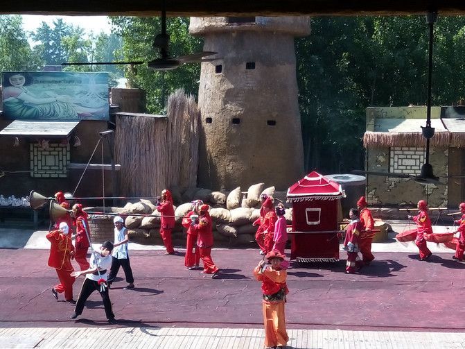 3.嘎子印象剧场以抗日战争时期活跃在白洋淀水上的游击队为时代背景,打造了一部现代武打、高空威压、实景烟火、夸张搞笑的大型护卫情景剧,为华北明珠再添一缕风彩。