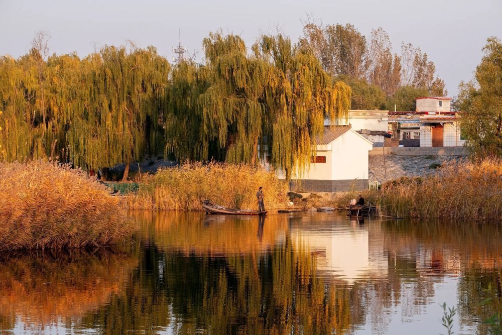 白洋淀位于河北省保定市,有“北国江南、北地西湖”的美誉,中国海河平原上最大的湖泊。白洋淀面积336平方千米,水产资源丰富,淡水鱼有50多种,白洋淀有堤防围护,淀内壕沟纵横,河淀相通,田园交错,水村掩映。秋天的白洋淀,芦苇花开始变黄,迎来最美的季节,是秋季赏芦苇最美的景点之一。届时,百里苇海将变成一片金黄,银灰色的芦花在万亩大淀随风飘荡,像蒙蒙的细雪,稻谷飘香,鸭鹅鸟成群,小舟穿梭往来,渔歌此起彼落。落霞中,芦花摇曳一抹浅醉,清雅飘逸,花序有致,洁白轻盈。