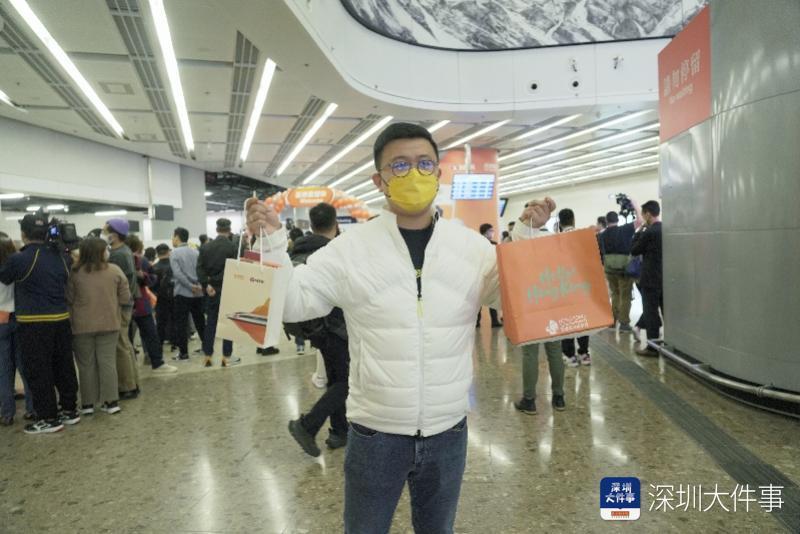 “我是回来过年的!”香港人林先生是深圳某港人子弟学校的老师,今天一大早就收拾好给三个孩子的小礼物,赶上首趟车回港,没有提前告知家人打算给一个惊喜。在深港两地恢复通关、高铁恢复通车前,林先生已做好一年回家两次的准备,现在他十分开心以后可以一个月回两次甚至频率更高。