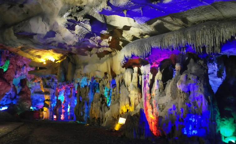 古佛洞天,位于广东韶关乐昌市市南郊5公里处。古佛洞天又名古佛岩,因洞内的石笋和钟乳石,形状如仙似佛,前人在洞内安放过佛像,在洞口又建有佛寺而得名。古佛岩属大型石灰岩溶洞,洞内上下重叠三层,最高处达30米,总面积12000多平方米。古佛洞天景区分玉皇、西游、逍遥三宫及古佛、观 音、王母、金龙四殿。各式石笋、石花、石柱、石幔或插其中、或悬其上,千姿百态,蔚为奇观。古佛岩还有3亿年前的海底珊瑚化石和罕见的大型石脑,亦堪称一绝。