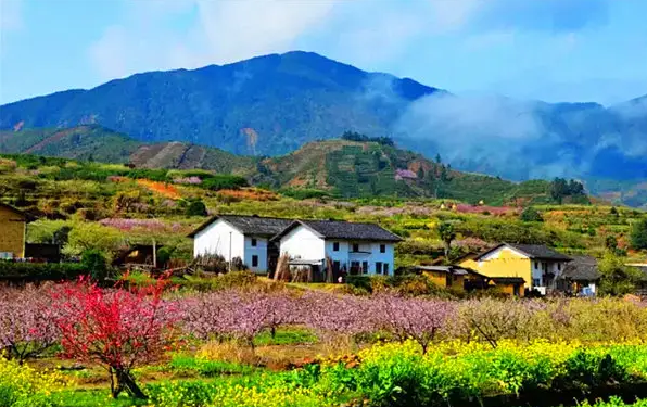九峰山被驴友们称为广东最美的乡村和广东桃花源。每到春季,六万亩桃花、李花争相怒放,最佳观赏期为2月至3月。走进九峰山,就如同走进世外桃源,桃如红霞,李似白雪,山上层层叠叠、田间茫茫一片、村里姹紫嫣红。