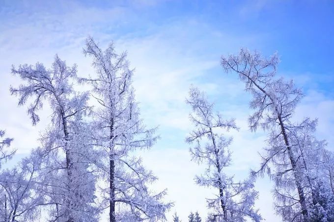 雾凇美景,为白雪皑皑的小镇大地披上了一层晶莹洁净的白纱,光秃秃的树枝银装素裹,一层层、一排排,晶莹剔透,蔚为奇观,使人如入梦幻世界。