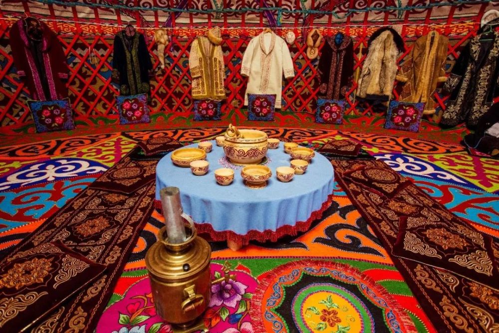 终年以草原为家的哈萨克人会盛情接待远道来的客人。在哈萨克人家中, 有为老人特设的木床, 客人进屋后应坐在地毯上, 切忌坐床。