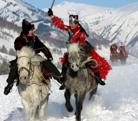英勇的哈萨克族人,有一种传统的马上游戏——叼羊。不仅是哈萨克族牧民所进行的一项扣人心弦的马上游戏,而且是一种力量和勇气的较量,马术和骑术的比赛。