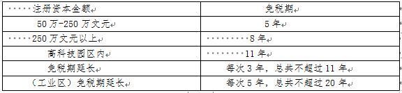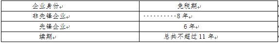 先锋服务公司可享受免所得税以及可结转亏损和补贴等待遇。免税期 8年,可延长,但不超过11年。