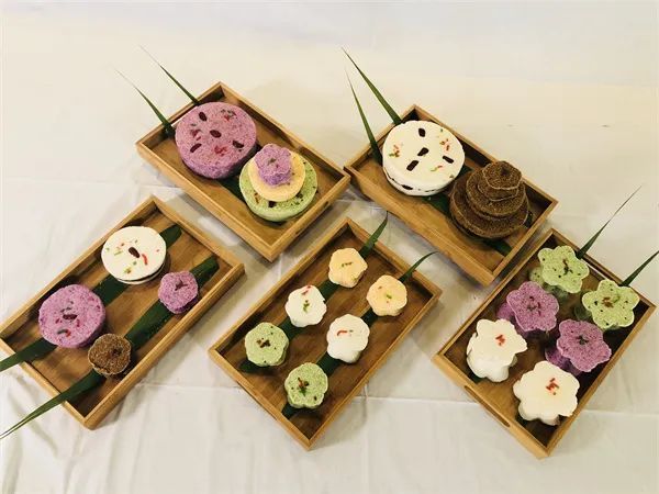 四喜风糕:分别是新婚之喜“行盘糕”,出生之喜“定胜糕”,乔迁之喜“满囤糕”,寿诞之喜“寿糕”,不同的风糕有着不同的材料与内涵,这凝聚着罗泾人的智慧结晶,体现着地域的风土人情。