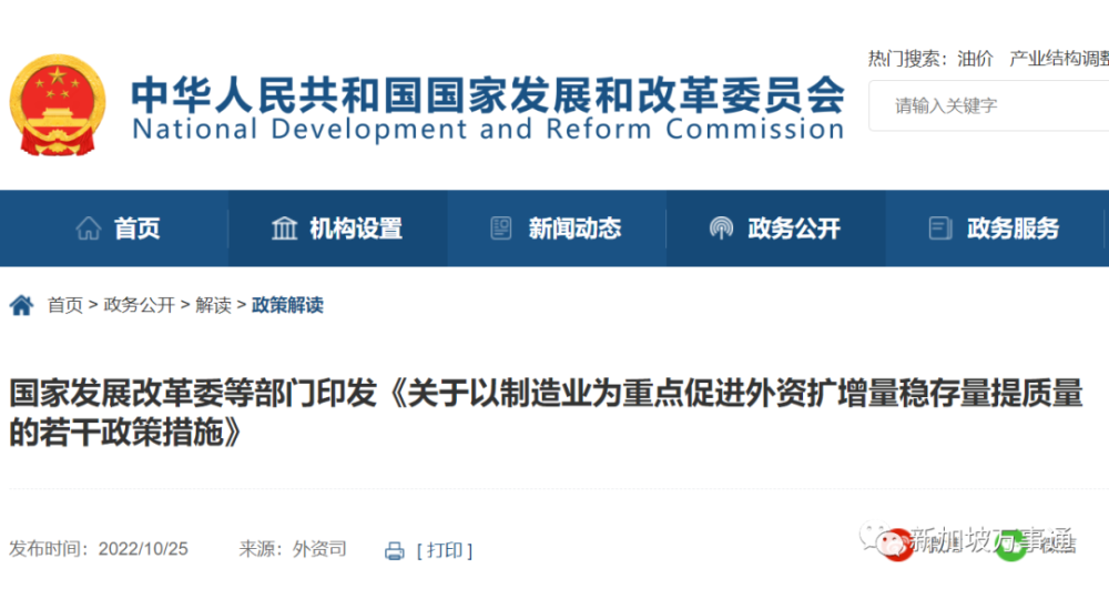 今天(10月25日)上午,经国务院同意,国家发展改革委、商务部、工业和信息化部、自然资源部、生态环境部、交通运输部联合印发了《关于以制造业为重点促进外资扩增量稳存量提质量的若干政策措施》(以下简称《该政策》)。