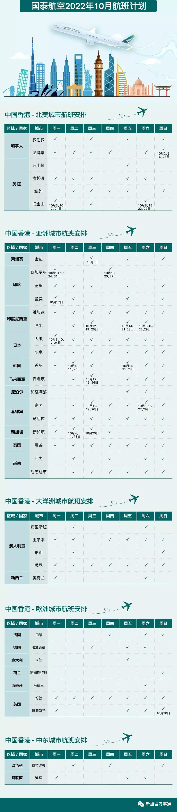 10月起恢复香港前往迪拜、米兰、马德里、加德满都和班加罗尔的航班运作。