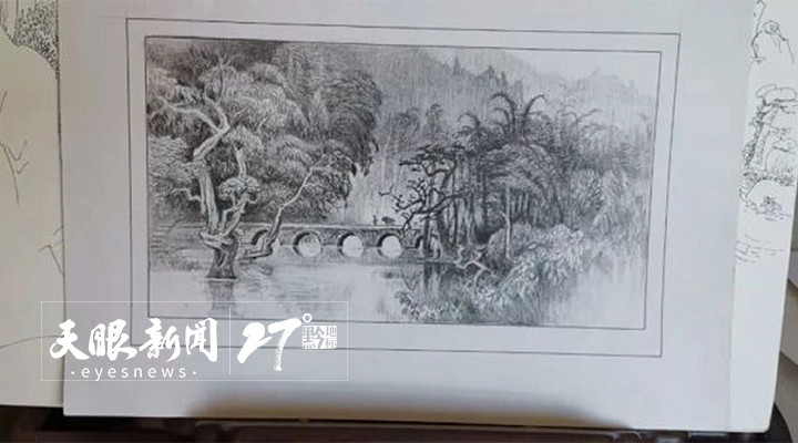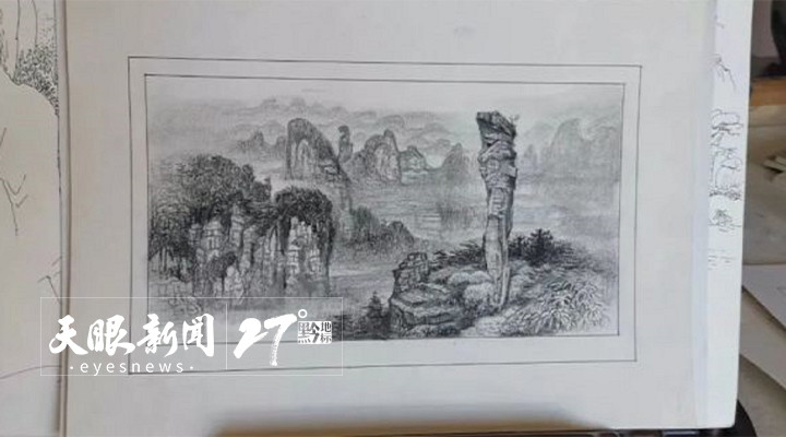 美术师杨文清设计的荔波喀斯特和施秉喀斯特邮票素描手稿