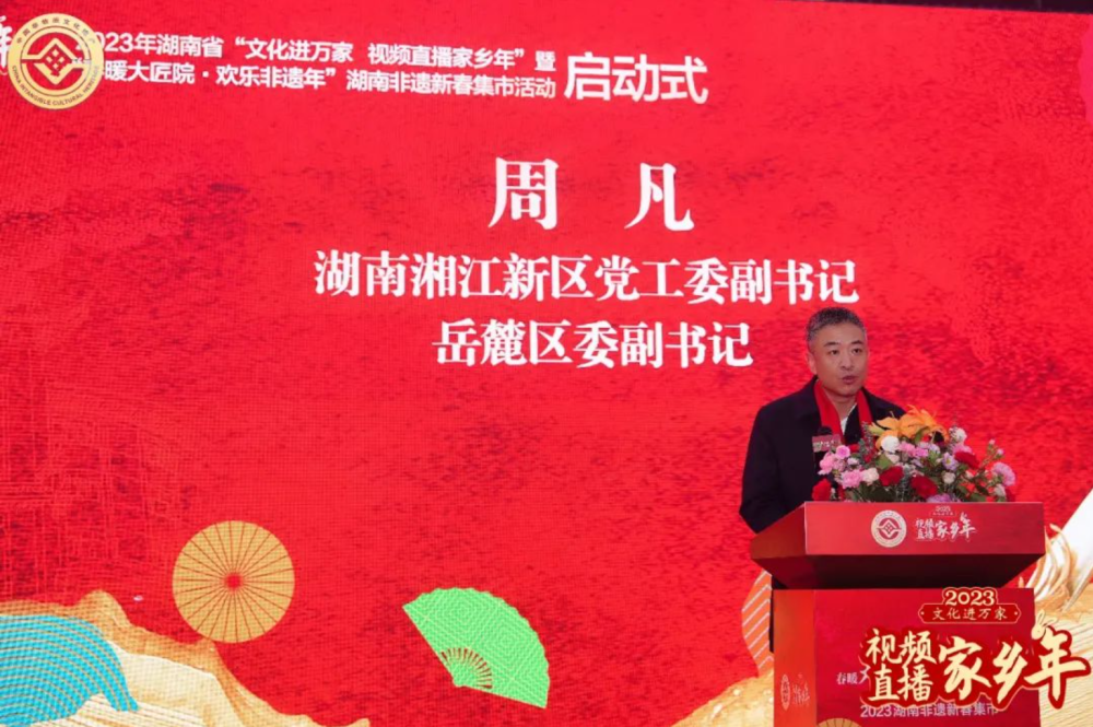 湖南湘江新区党工委副书记、岳麓区委副书记周凡在讲话中表示,湘江新区浸透湖湘文化精髓,汇聚长沙千年灵秀。近年来,一直将非遗文化作为新区文化事业的重中之重,坚持在保护中传承、在传承中发展。新区将以此次盛会为契机,讲好非遗故事,传承非遗文化,更好地赋能文旅融合,乡村振兴。