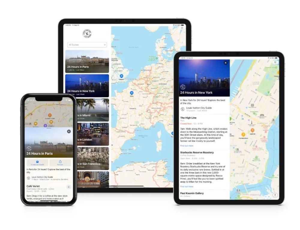 前段时间,LV和 apple 合作,将它们的“24 hours in city”放上了apple map。
