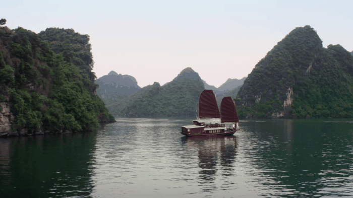 而在下龙湾则能一睹罕见的海上喀斯特地貌。2000多块形状各异的岩石矗立在海面上,因为酷似广西桂林,所以有“海上桂林”的美誉。这里也被列入了世界遗产名录。