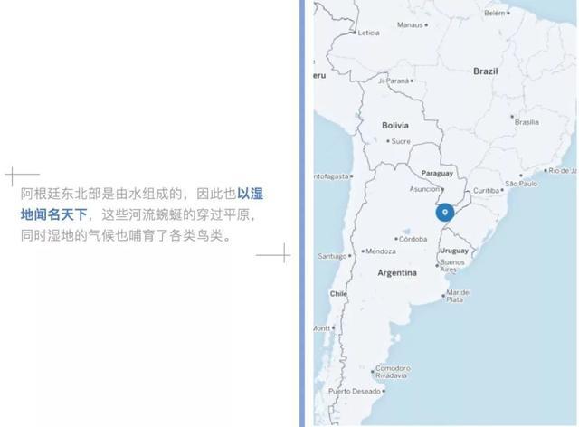 阿根廷东北部的自然奇观数不胜数,丰富的历史和特殊的野生动物,也让无数人心向往之。作为著名的湿地区域,这一得天独厚的气候也造就其成为鸟类的天堂 。