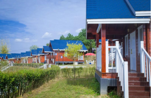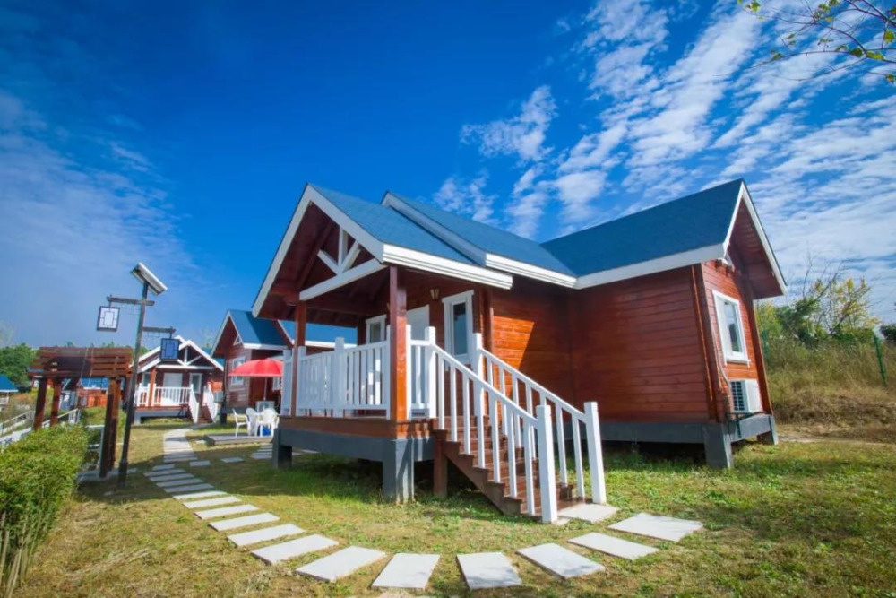 八岭湖特色木屋皆是全实木结构,沿湖傍山,清静幽雅,别有一番风味。