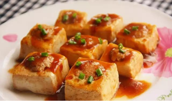 酿豆腐制作方法精细,“把三关”“走四步”,外脆里嫩,营养丰富,为洪武宴席上佳肴。