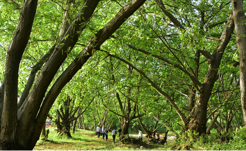在这里,可以和牛羊亲切问好;可以走到湖边漫步晒太阳;可以在树林中收集采集纹理不一的树叶,拥抱自然,感受春的气息。