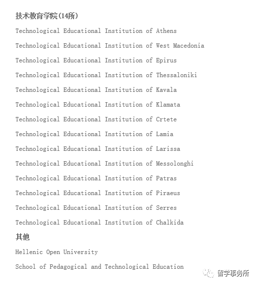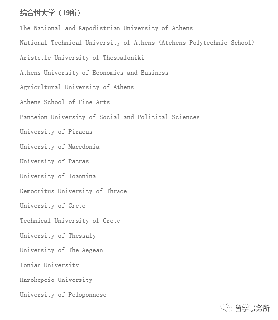 教育部涉外信息监管网希腊高校名单