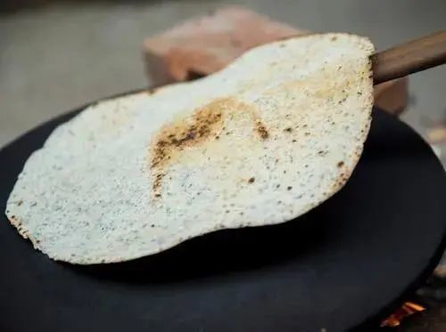 烙馍时要用小擀杖挑着饼,不停翻面,受热的一面被翻过来后,上面会被烙出点点焦黄的满天星图案,本来白白的面饼,似乎成了一幅波斯细密画图。等两面都烙至焦黄后,饼馍就宣告烙熟了。