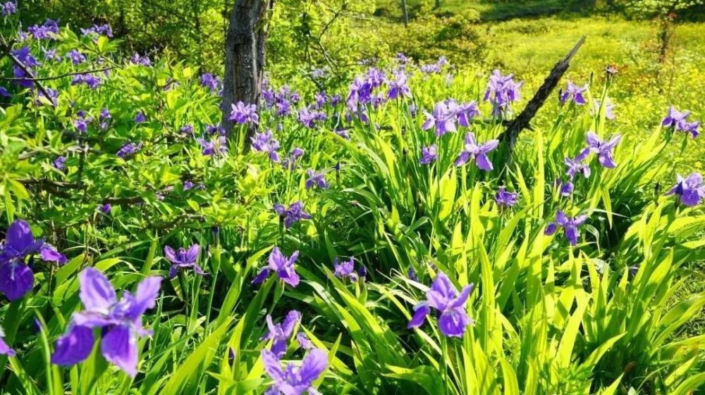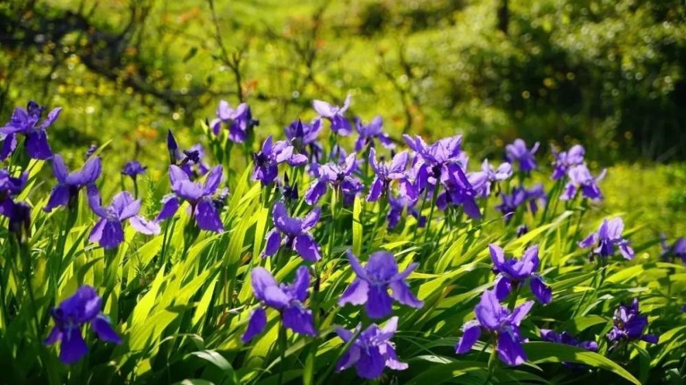 五月份的牛栏坪草甸碧绿,鲜花盛开。在清晨,阳光穿过树梢,洒在花丛中,紫色的花瓣在绿色叶子的衬托下,显得格外美丽,仿佛一只只蝴蝶在山间翩翩起舞,美不胜收。