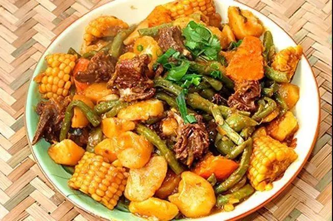 “东北一锅出”是一道东北特色菜,锅里又炖菜又烀饼子,菜炖在锅底,饼子贴在锅边。东北的农家一锅出是用铁锅明火上桌,体现了东北人豪放的性格。