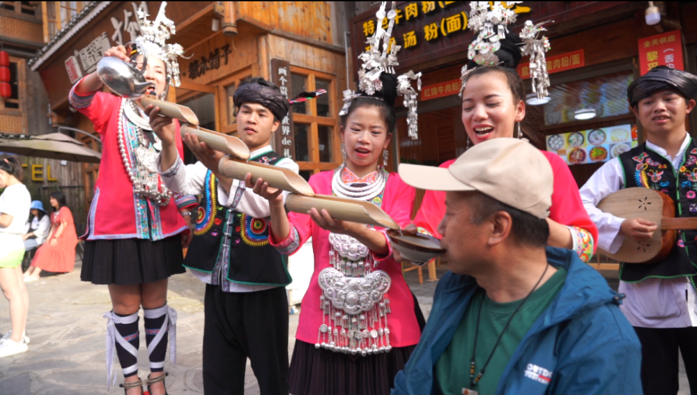 你瞧,在肇兴侗寨寨门,村民们载歌载舞,迎接远道而来的客人,侗家姑娘们如蝴蝶般灵动的舞姿,让游客们目不转睛。走进寨内,可体验着蜡染、扎染等非遗项目。能看见独有侗族文化的盛装巡游、抬官人等活动。夜幕降临时,可以观看篝火表演,与当地村民一起共同吹芦笙、踩歌堂。欣赏侗族特色建筑、体验侗族民俗,享受美好的假期时光。