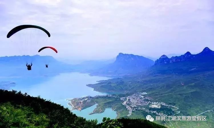 牂牁江湖滨旅游度假区有着“夜郎都邑”的美誉,坐落在六枝特区西南部的老王山下北盘江(牂牁江)畔,独特的地形地貌为滑翔伞运动提供了得天独厚的场地。起飞场地势高,垂直落差适宜,舒缓起伏的山坡,宽阔平坦的湖面,让滑翔伞爱好者们在翱翔蓝天的同时还能一览祖国的大好河山。